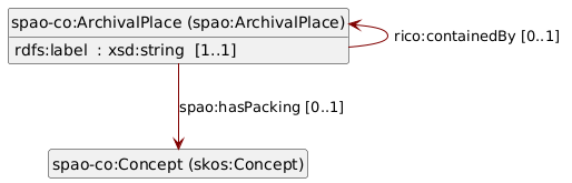 A reference to a concept in the packing controlled vocabulary to indicate the king of packaging or format of this place, such as "box A4", "box A5", "digital file", "painting", etc. This is not stated on all archival places. |